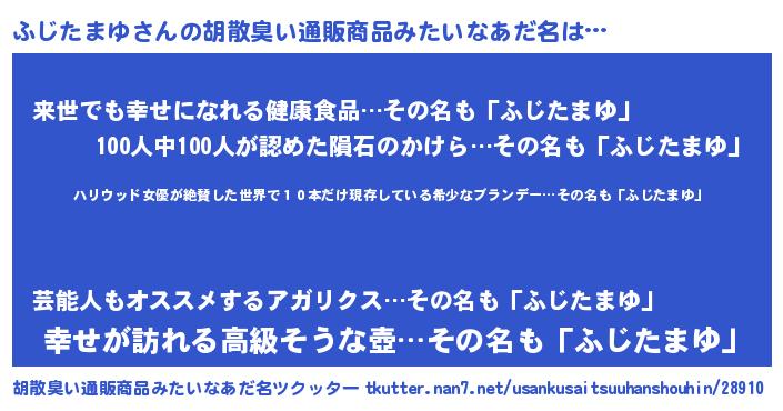 | 男性向けラノベタイトル風あだ名 | 『魔弾の王とふじたまゆ』 |