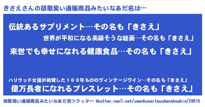 | ヘコむあだ名 | 『きさえ(爆)』『きさぷりん』 |