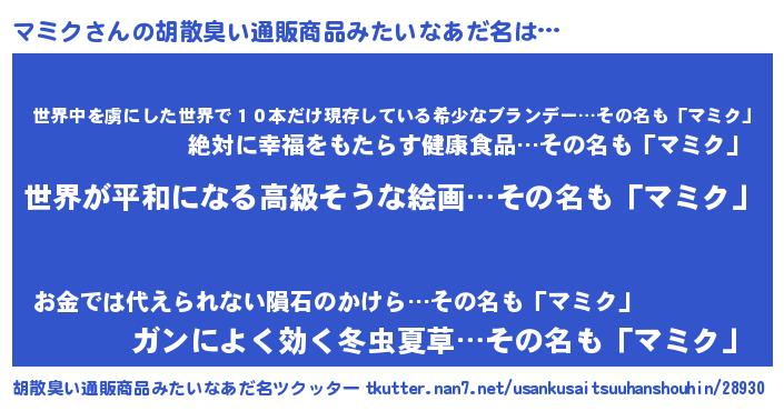 | 意味不明あだ名 | 『マミクフォーエバー』『自称マミク』 |