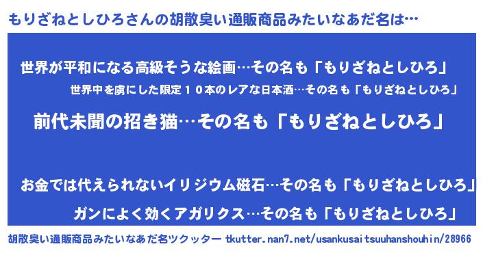 | ヘコむあだ名 | 『もりざねとしひろ(笑)』『豆乳』 |