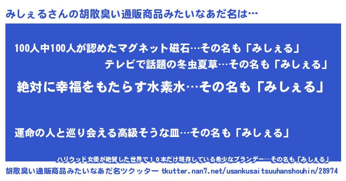 | ヒーロー風カッコイイあだ名 | 『ネオミシェル』『正義の使者みしぇる』 |