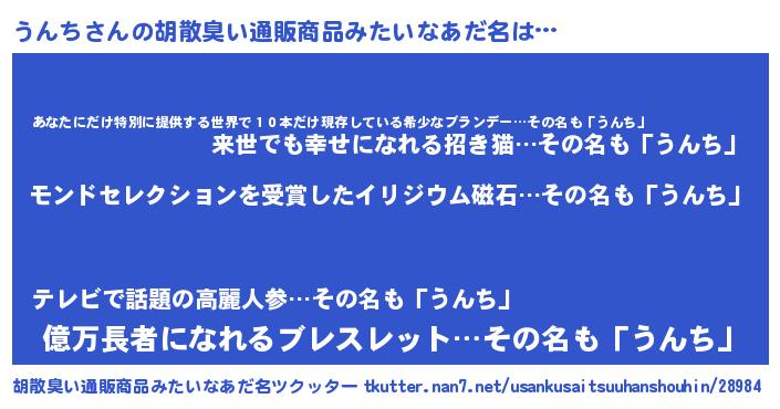 | ヘコむあだ名 | 『うんにゅー』『うんち(遠い目)』 |