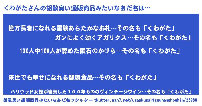 | ヘコむあだ名 | 『くわもー』『くわがた(苦笑)』 |