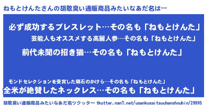| 欧米人風あだ名 | 『ダルビッシュねもとけんた』 |