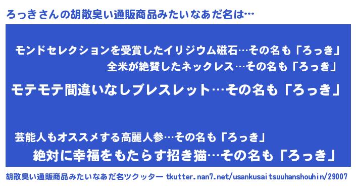 | ヒーロー風カッコイイあだ名 | 『スーパーロッキ』『天空の使者ろっき』 |