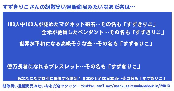 | ヘコむあだ名 | 『なまこ酢』『すずっ子』 |