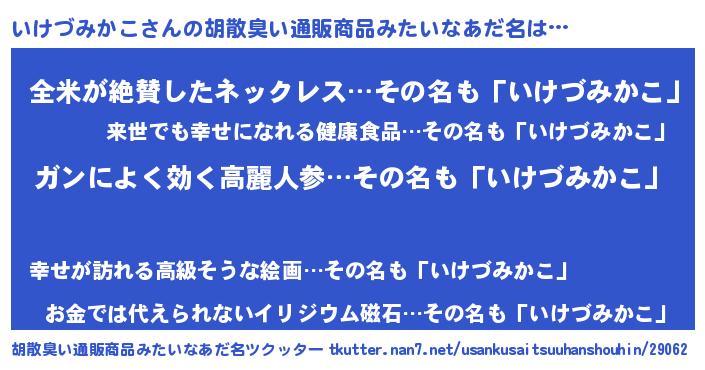 | ヘコむあだ名 | 『いけ太郎』『いけづみかこ(苦笑)』 |