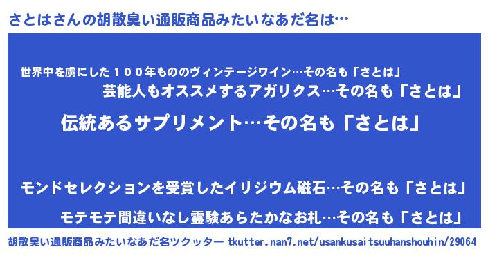 | 意味不明あだ名 | 『とにかく怪しいさとは』『自称さとは』 |