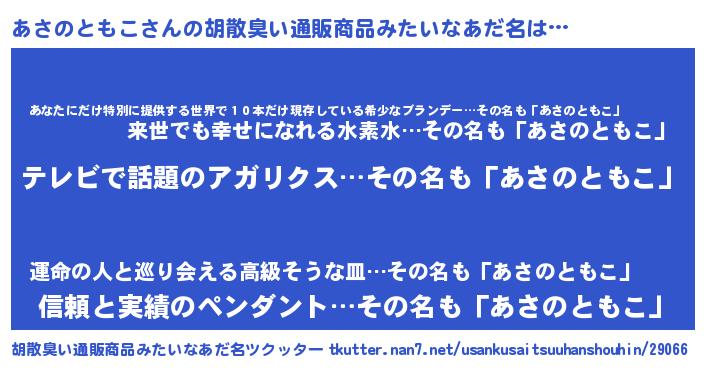 | 意味不明あだ名 | 『自称あさのともこ』 |
