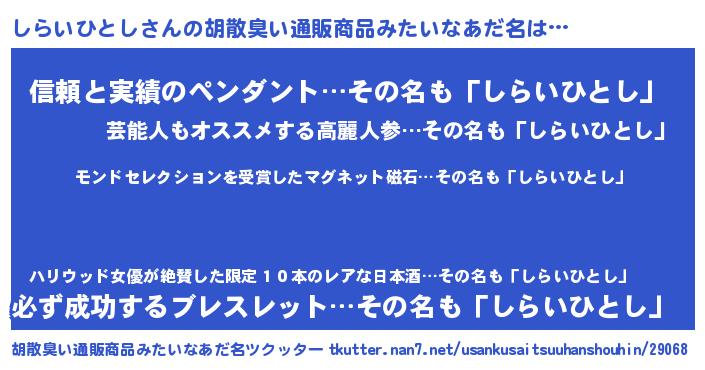 | ヒーロー風カッコイイあだ名 | 『天空の使者しらいひとし』 |
