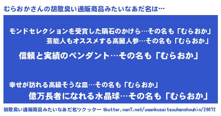 | 意味不明あだ名 | 『とにかく怪しいむらおか』 |