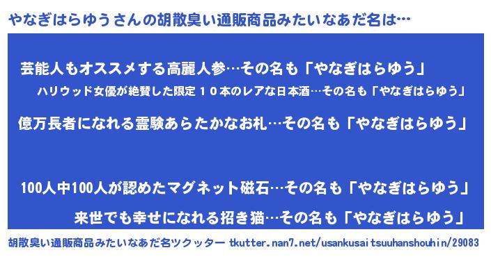 | 肩書あだ名 | 『やなぎはらゆうプロデューサー』 |