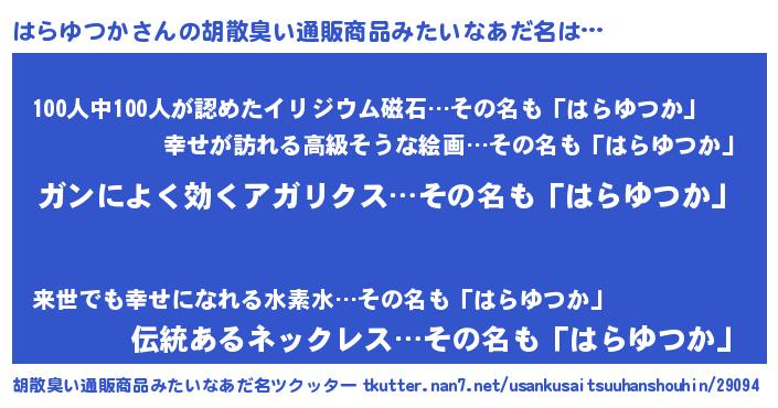 | 意味不明あだ名 | 『自称はらゆつか』 |