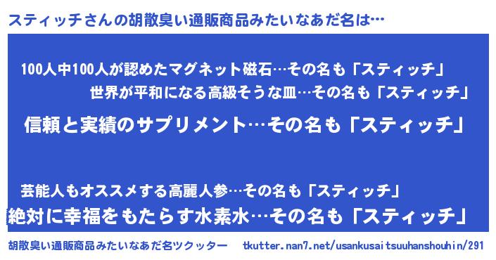 | ヘコむあだ名 | 『ステを』『スティッチ(震え声)』 |