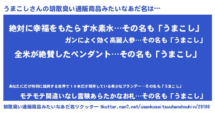 | 男性向けラノベタイトル風あだ名 | 『うまこしの嫁は女の子じゃないと思った?』 |