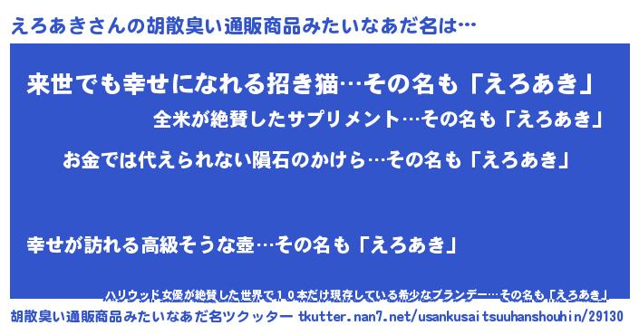 | ヘコむあだ名 | 『えろあき(遠い目)』『えろお』 |
