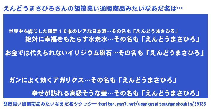 | ヘコむあだ名 | 『なまこ酢』『えんどうまさひろ(笑)』 |