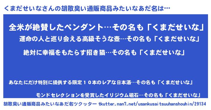 | ヘコむあだ名 | 『くまだせいな(小並感)』『くまっちょ』 |