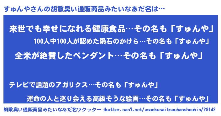 | ヘコむあだ名 | 『すゅっちょ』『すゅんや(笑)』 |