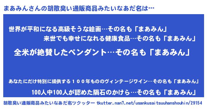 | 男性向けラノベタイトル風あだ名 | 『うちのまあみんが世界を掌握している!』 |