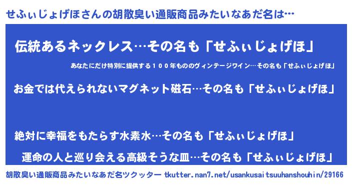 | 欧米人風あだ名 | 『アンジェラ・せふぃじょげほ』 |