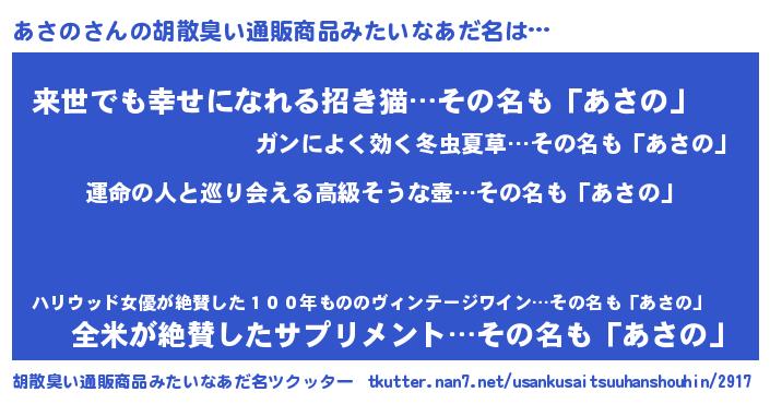| 意味不明あだ名 | 『あさのフォーエバー』『永久保存あさの』 |