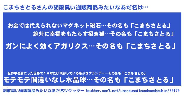 | ヘコむあだ名 | 『こまもー』『こまちさとる(笑)』 |