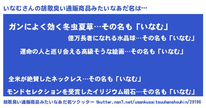 いなむさんの胡散臭い通販商品みたいなあだ名をツクッター!
