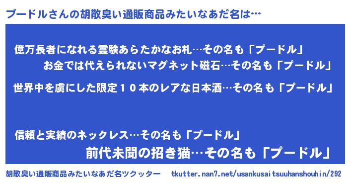| 男性向けラノベタイトル風あだ名 | 『この素晴らしい世界にプードルを!』 |