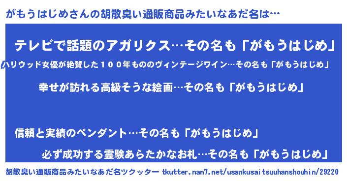 | 意味不明あだ名 | 『がもうはじめフォーエバー』 |