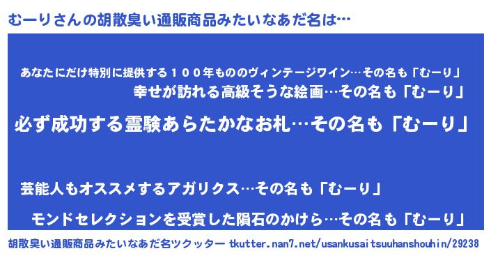 | 男性向けラノベタイトル風あだ名 | 『むーりの憂鬱』『緋弾のムーリ』 |