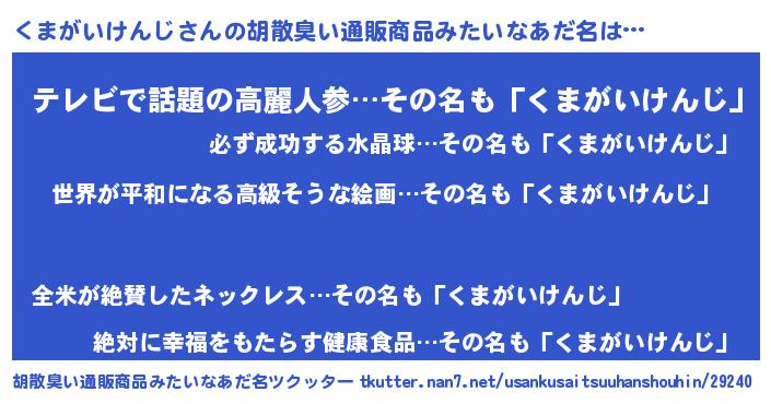 | 肩書あだ名 | 『くまがいけんじ総理大臣』 |