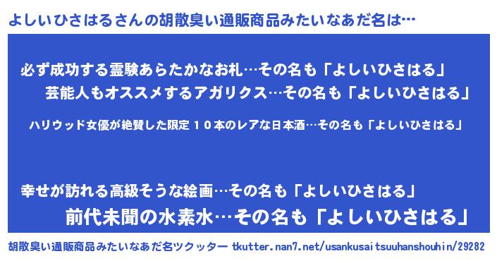 | ヘコむあだ名 | 『よしもー』『よしいひさはる(苦笑)』 |