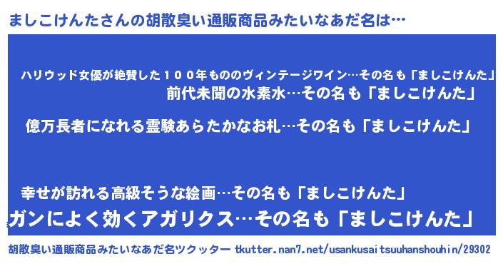 | ヘコむあだ名 | 『ましっふぃ~』『ましこけんた(小並感)』 |
