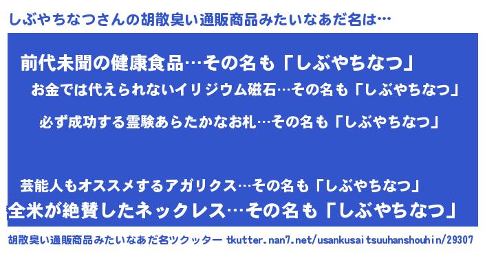 | ヘコむあだ名 | 『しぶっふぃ~』『しぶやちなつ(笑)』 |