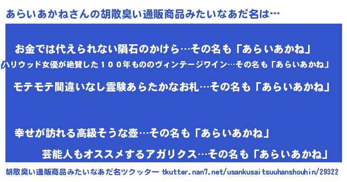 | ヘコむあだ名 | 『あらもー』『豆乳』『あらを』 |