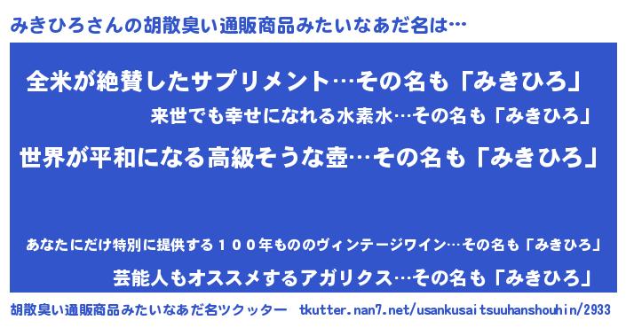 | 意味不明あだ名 | 『みきひろフォーエバー』『自称みきひろ』 |
