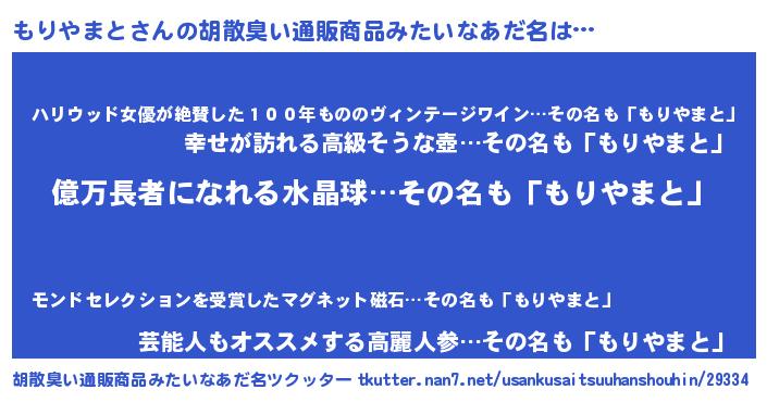 | ヘコむあだ名 | 『もりもー』『牛乳』『もりを』 |