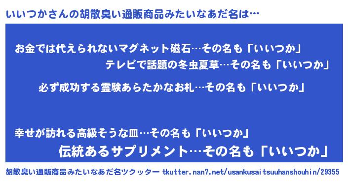 | 男性向けラノベタイトル風あだ名 | 『イイツカスレイヤー』『いいつかの憂鬱』 |