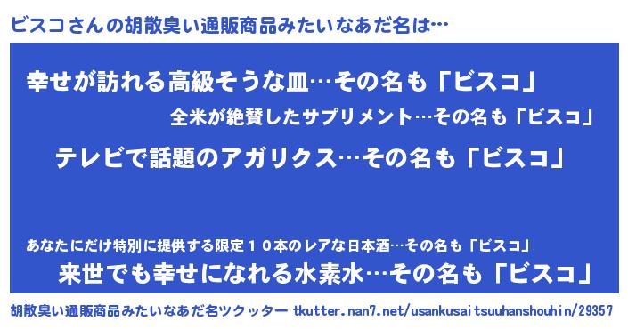 | 意味不明あだ名 | 『自称ビスコ』『ビスコフォーエバー』 |