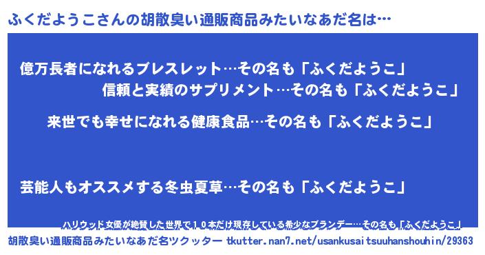 | ヘコむあだ名 | 『ふくだようこ(爆)』『ふくふぇ~』 |