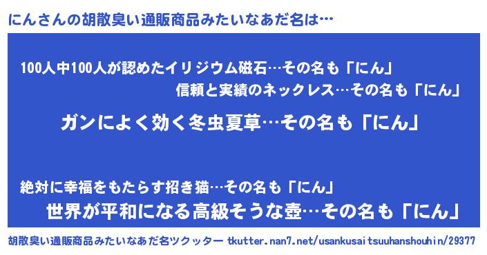 | 意味不明あだ名 | 『自称にん』『眠気覚ましガムにん味』 |