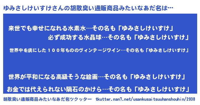 | 意味不明あだ名 | 『住所不定無職ゆみさしけいすけ(4歳)』 |