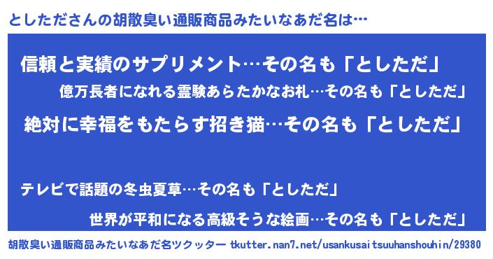 | 意味不明あだ名 | 『永久保存としただ』『ペロリンとしただ』 |