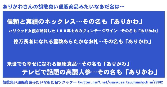 | 意味不明あだ名 | 『ペロリンありかわ』『自称ありかわ』 |