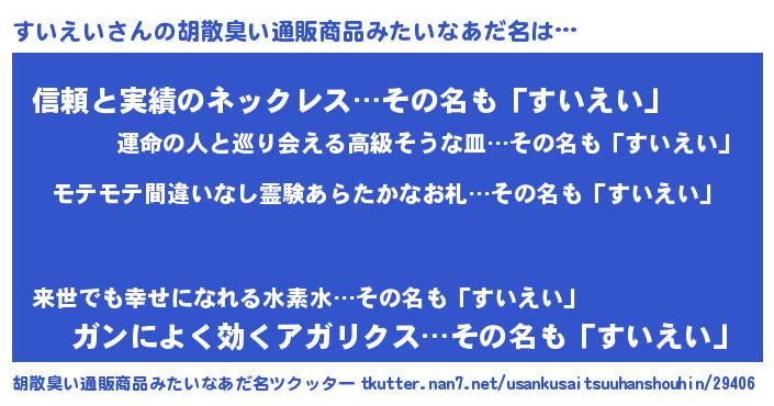 すいえいさんの胡散臭い通販商品みたいなあだ名をツクッター!