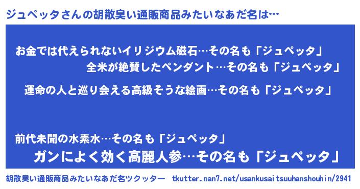 | 意味不明あだ名 | 『ジュペッタフォーエバー』 |