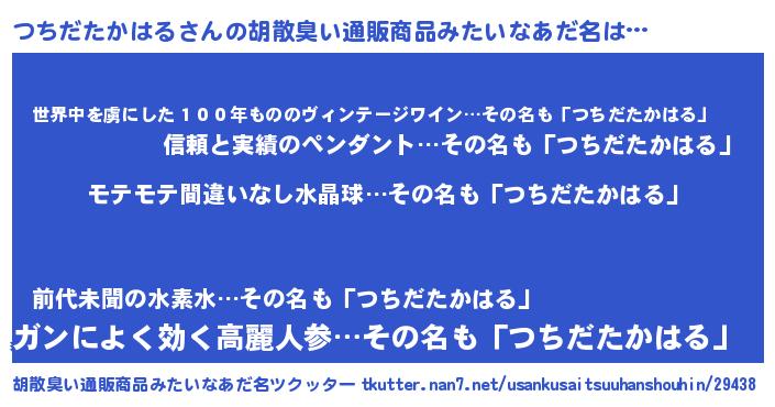 | 男性向けラノベタイトル風あだ名 | 『つちだたかはるの憂鬱』 |