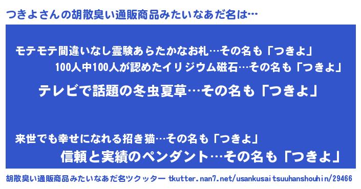 | ヘコむあだ名 | 『つきもー』『つきを』『酢こんぶ』 |