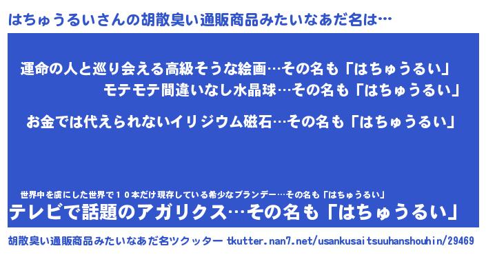 | ヒーロー風カッコイイあだ名 | 『愛の使者はちゅうるい』『仮面ハチダー』 |